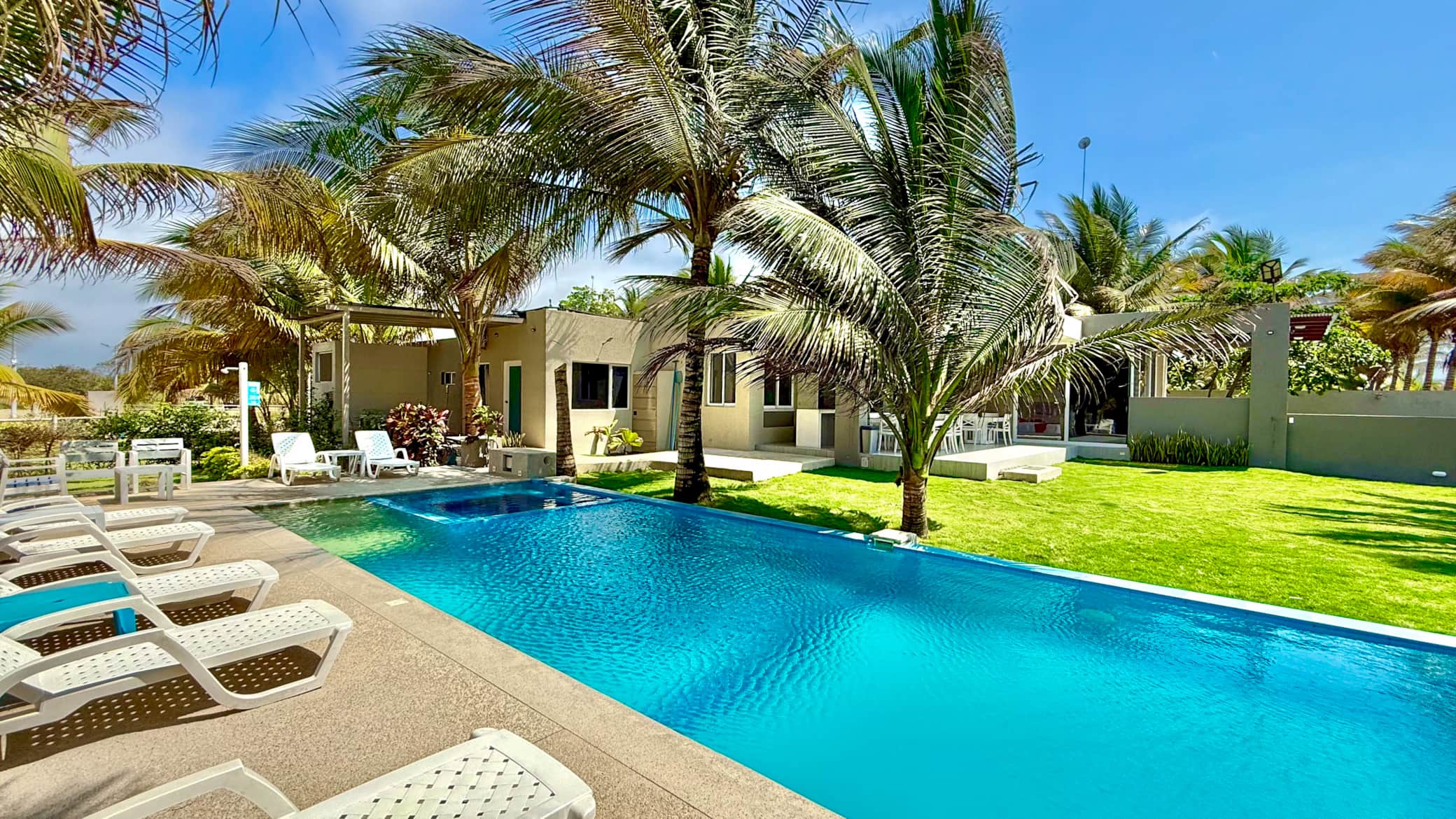 Casa exclusiva en Cojimíes frente al mar. Playa privada, piscina y jacuzzi temperados y de uso exclusivo. Hospedaje con capacidad desde 8 a 20 personas. Full equipada, segura y Pet Friendly